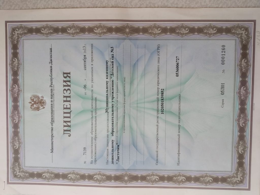 | Полное наименование образовательной организации* | Муниципальное казенное дошкольное образовательное учреждение "Детский сад №3" "Ласточка" с.Хунзах |
