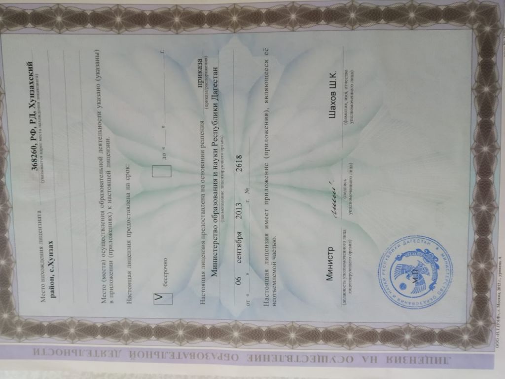| Адрес местонахождения образовательной организации* | 368260, Республика Дагестан, Хунзахский район с. Хунзах улица.Гаджиева 9 |